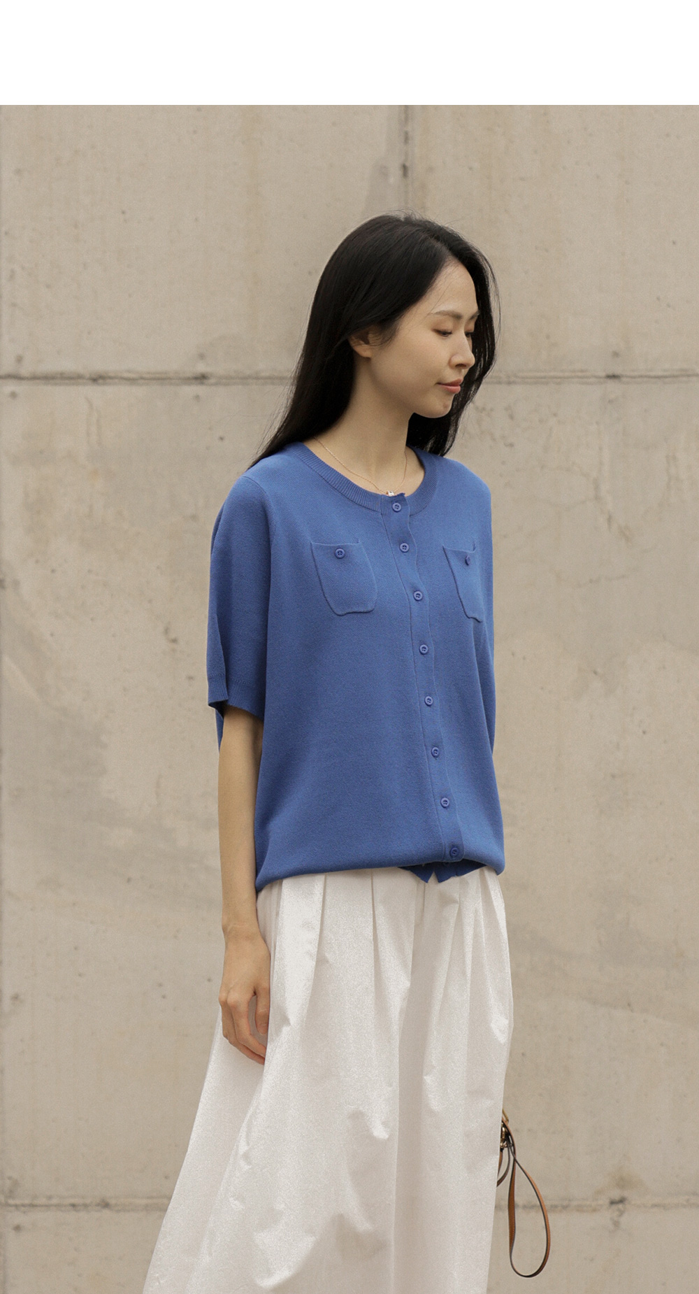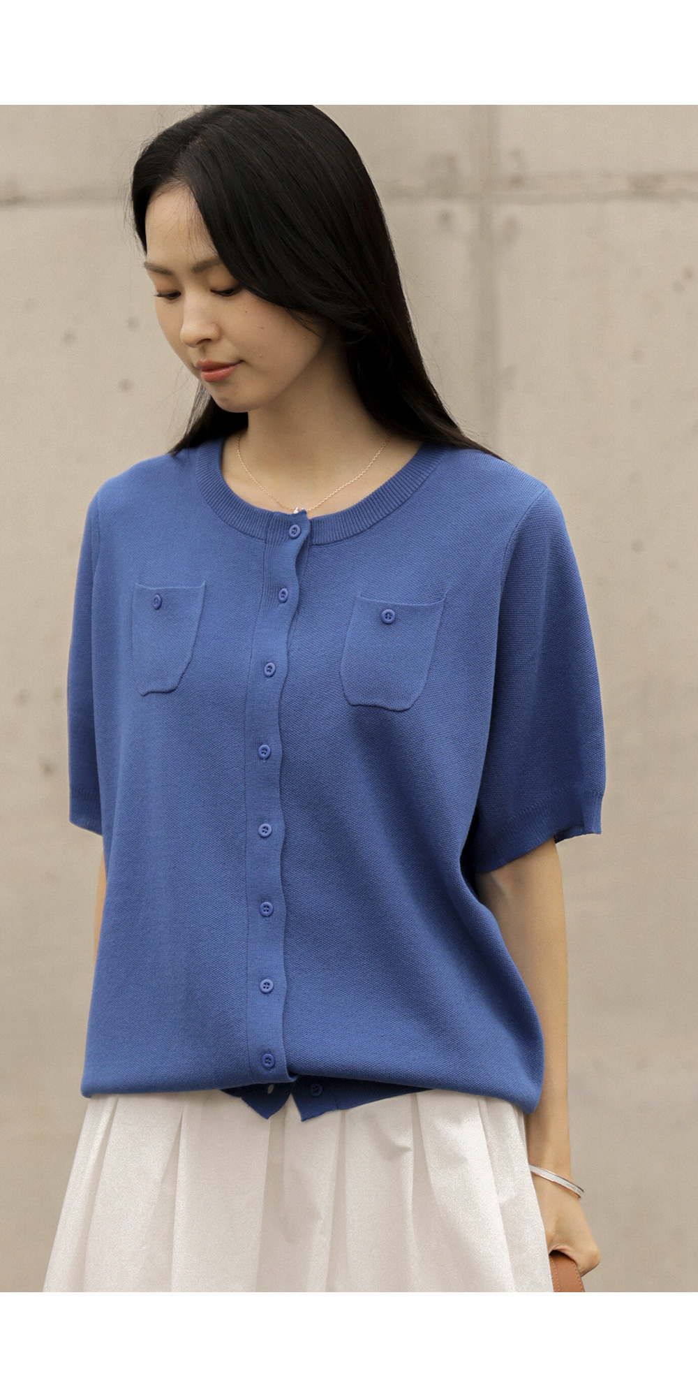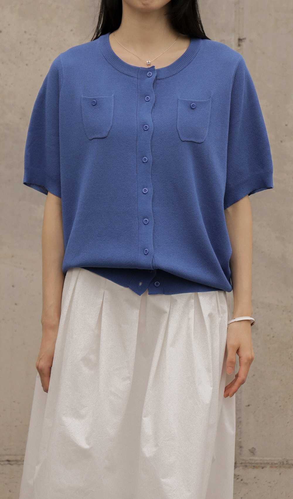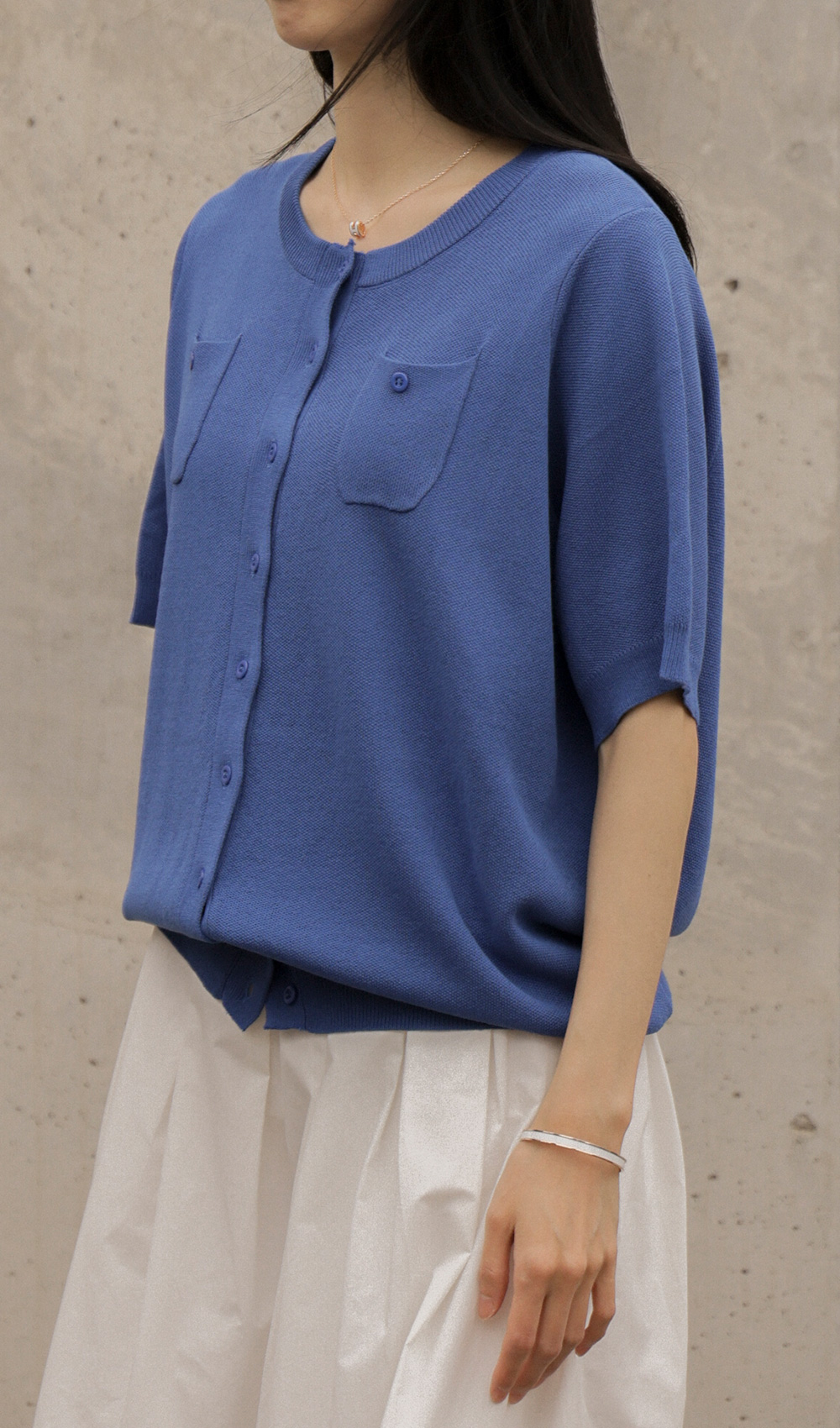 소로에 반팔 가디건 _ 블루