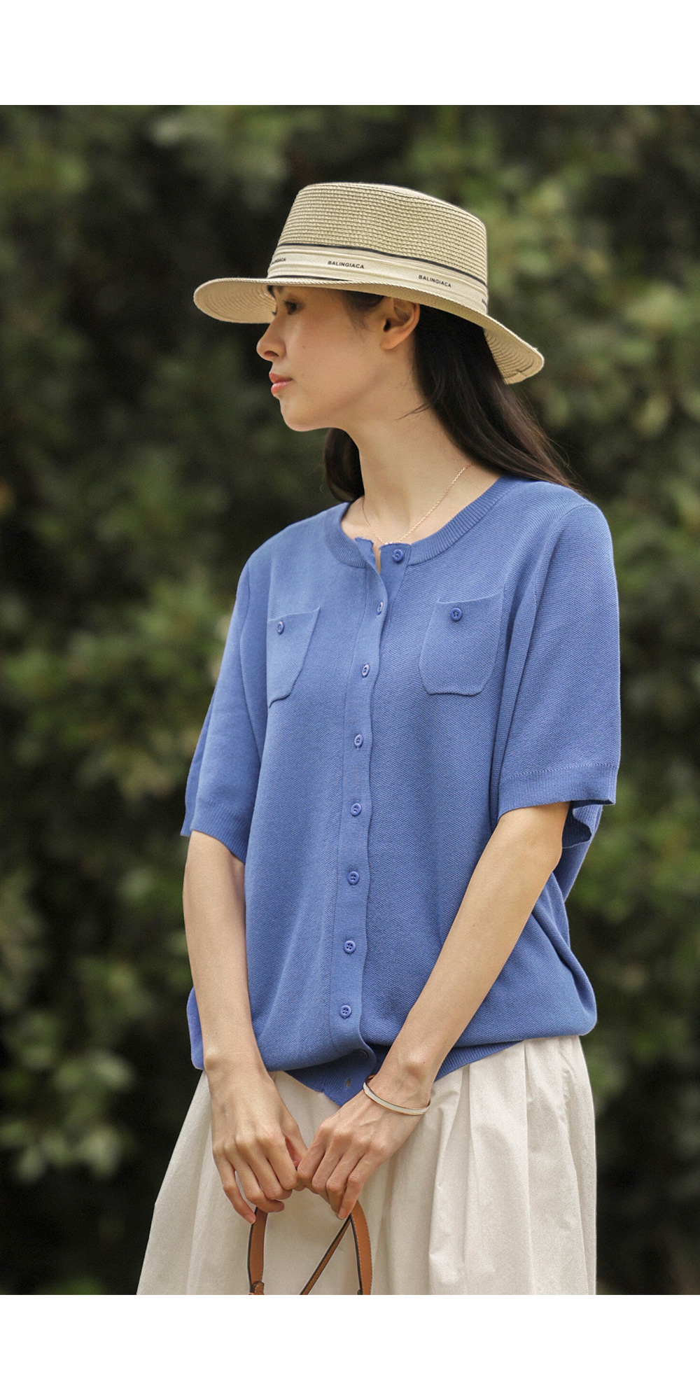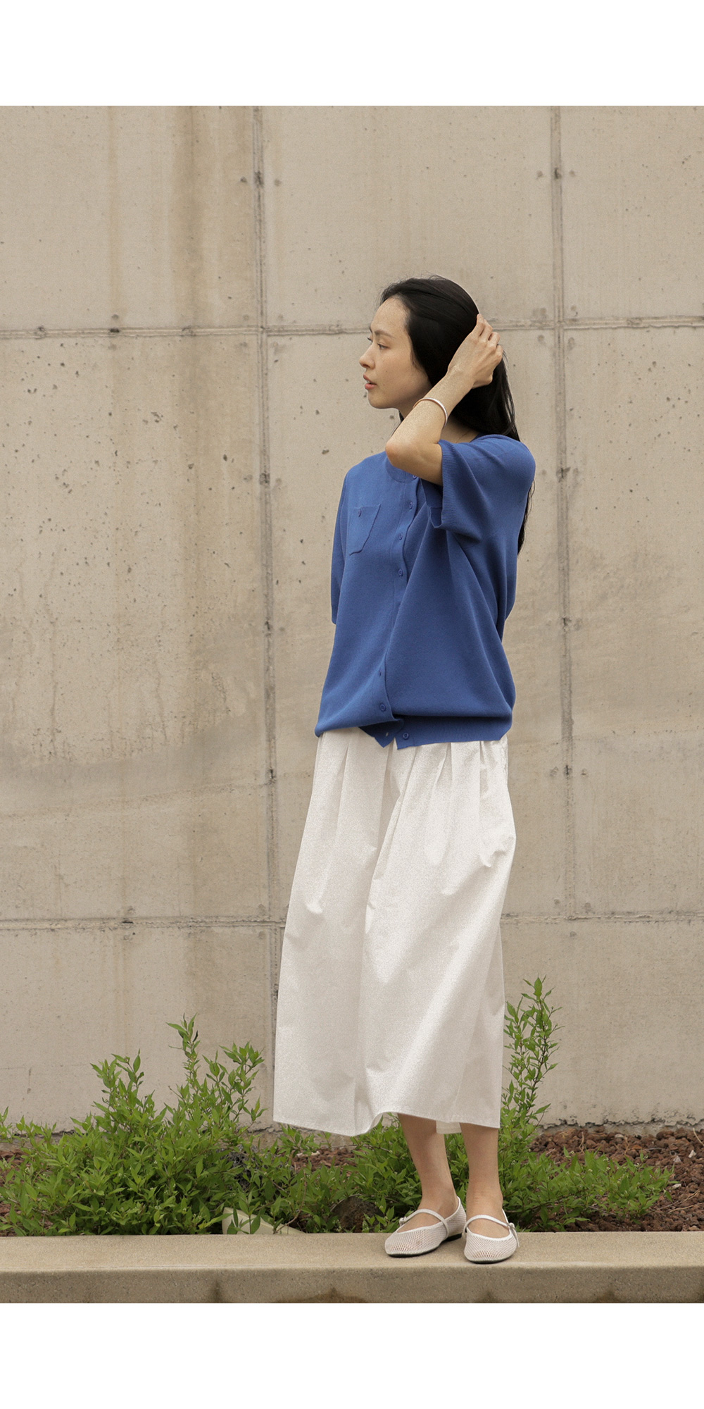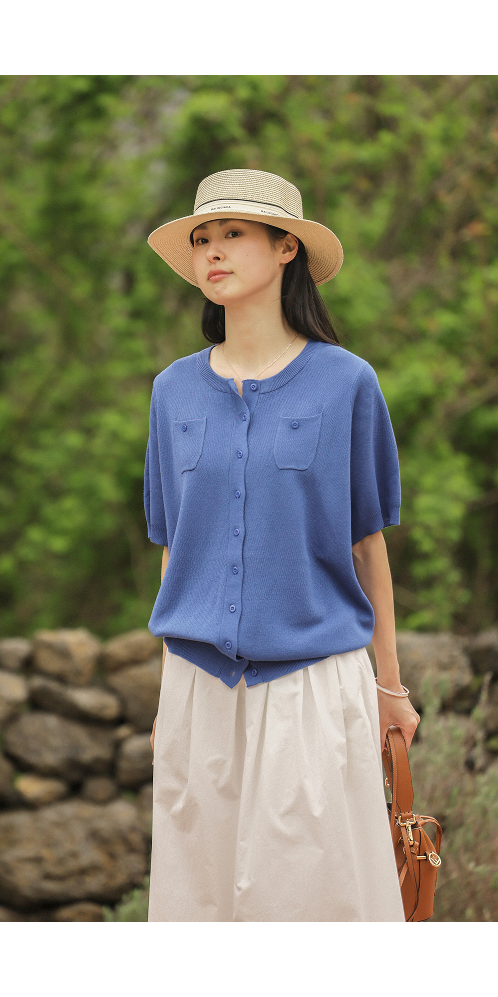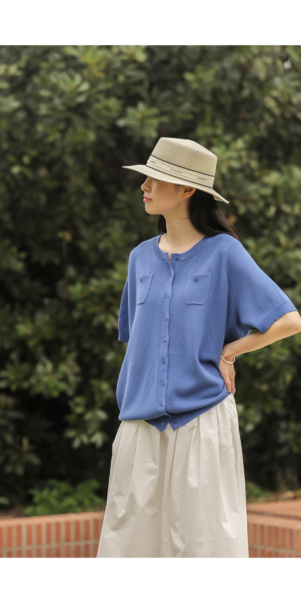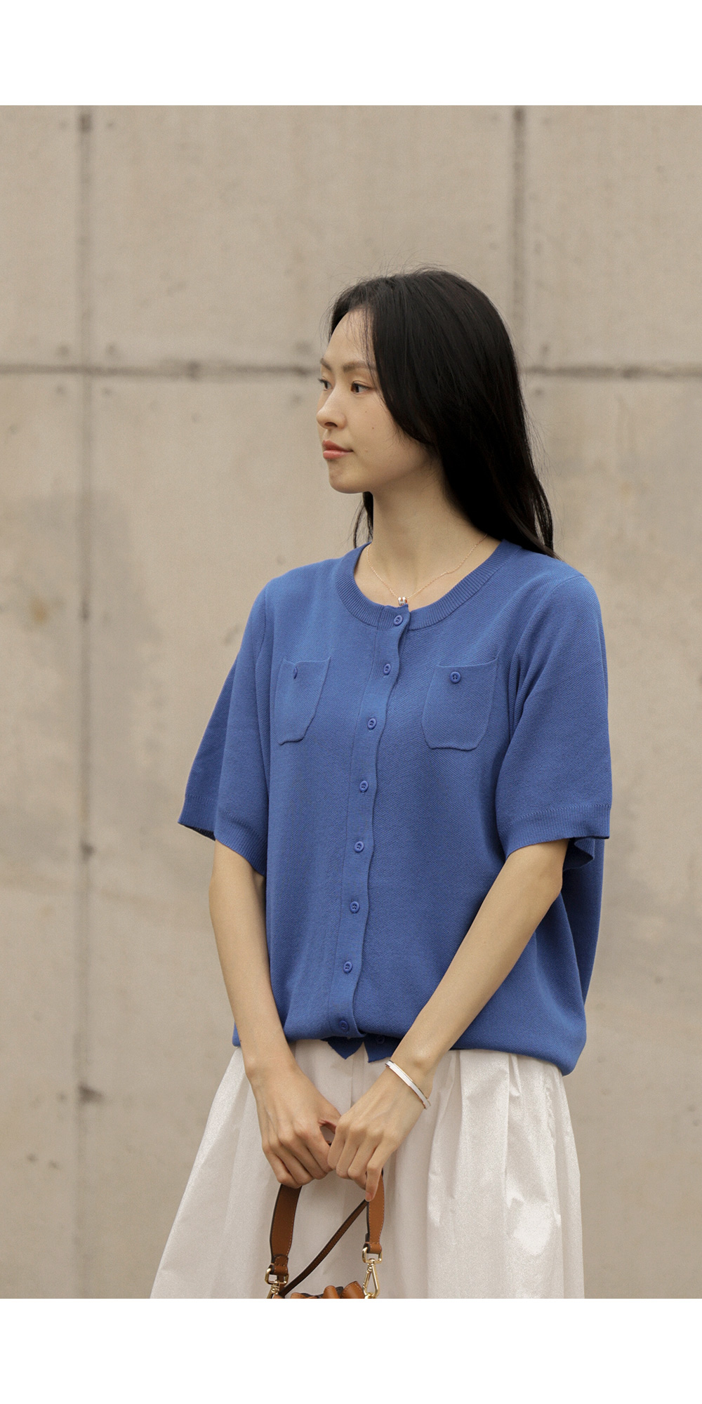 소로에 반팔 가디건 _ 블루