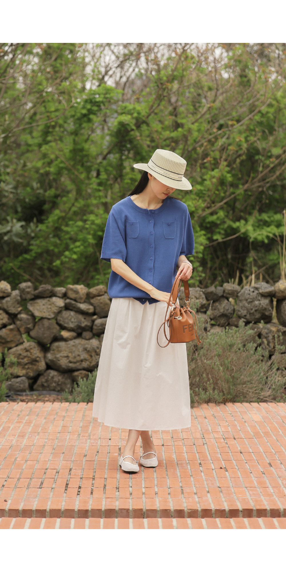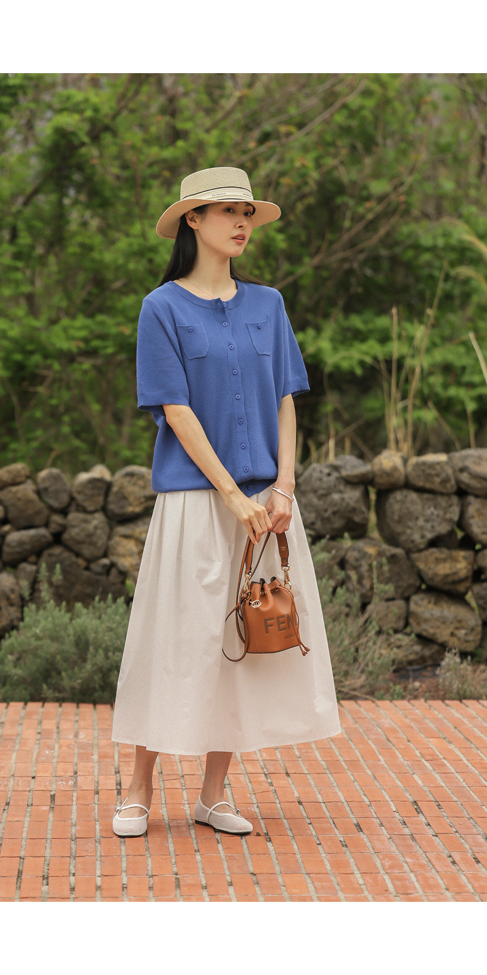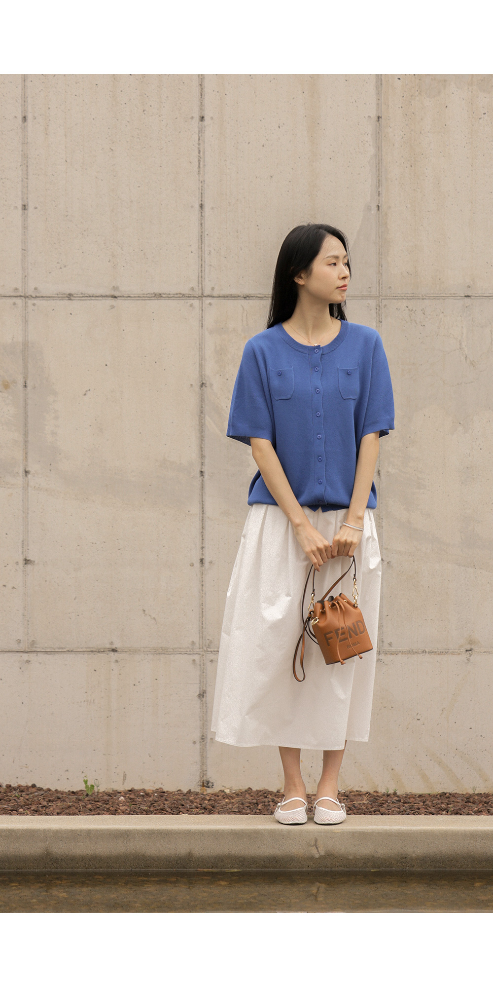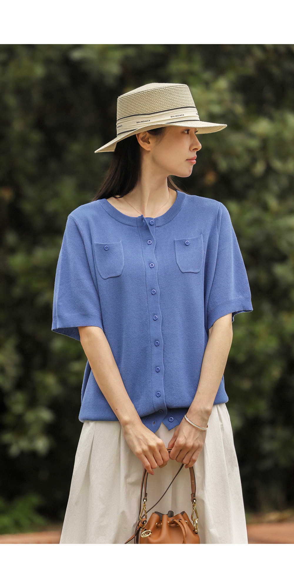 소로에 반팔 가디건 _ 블루