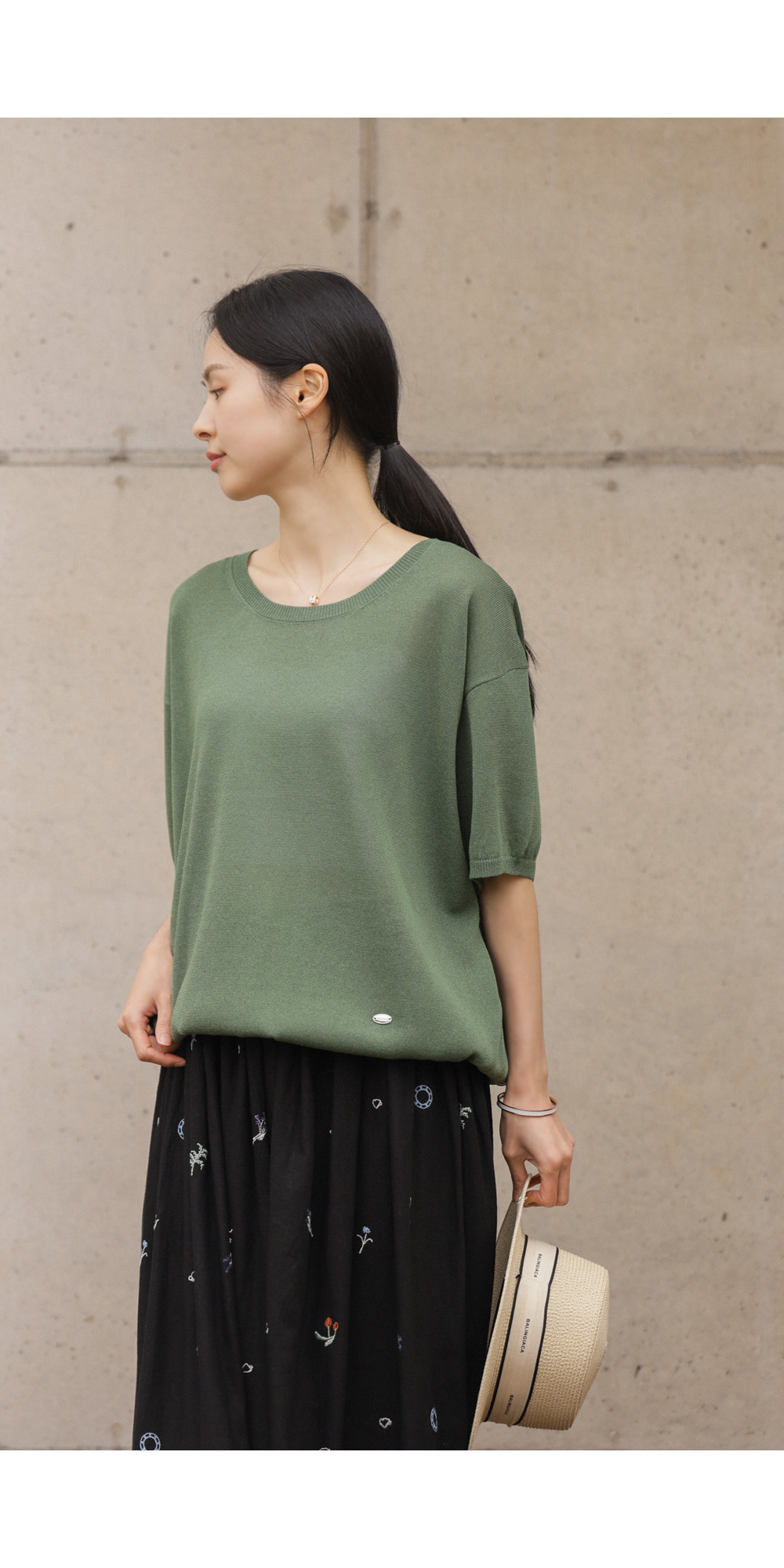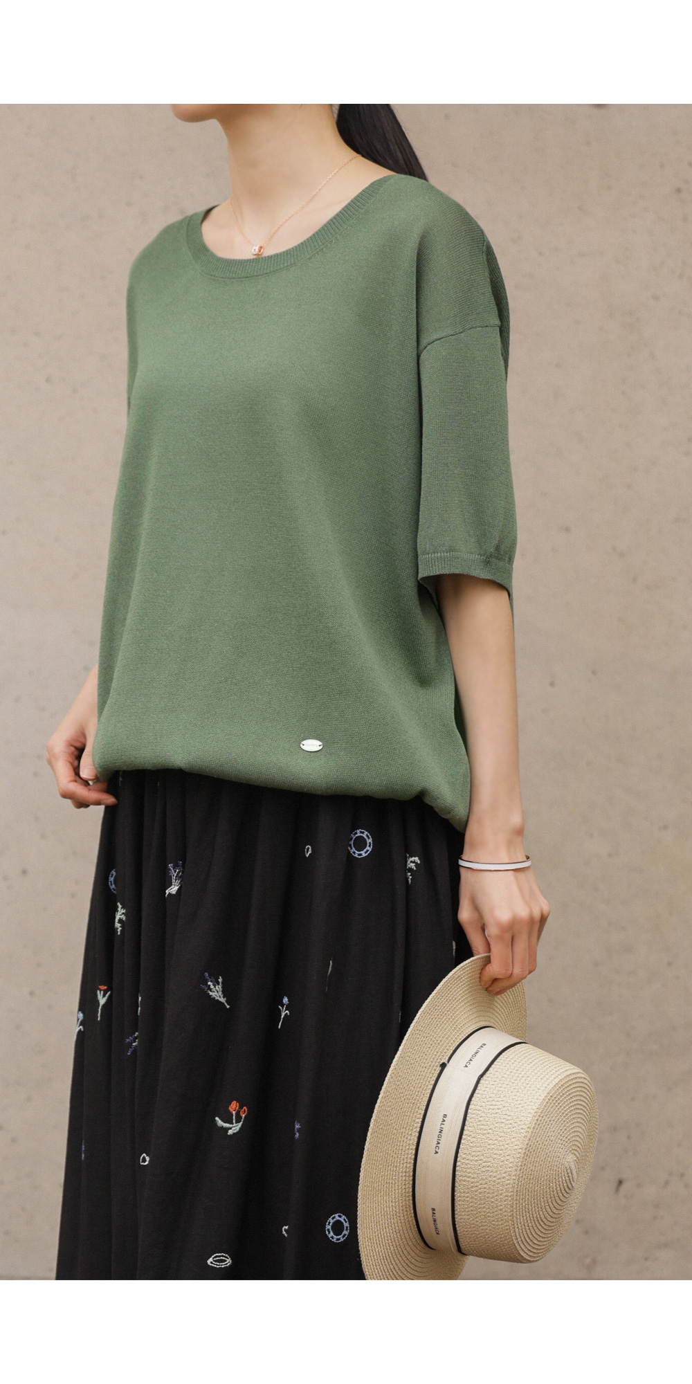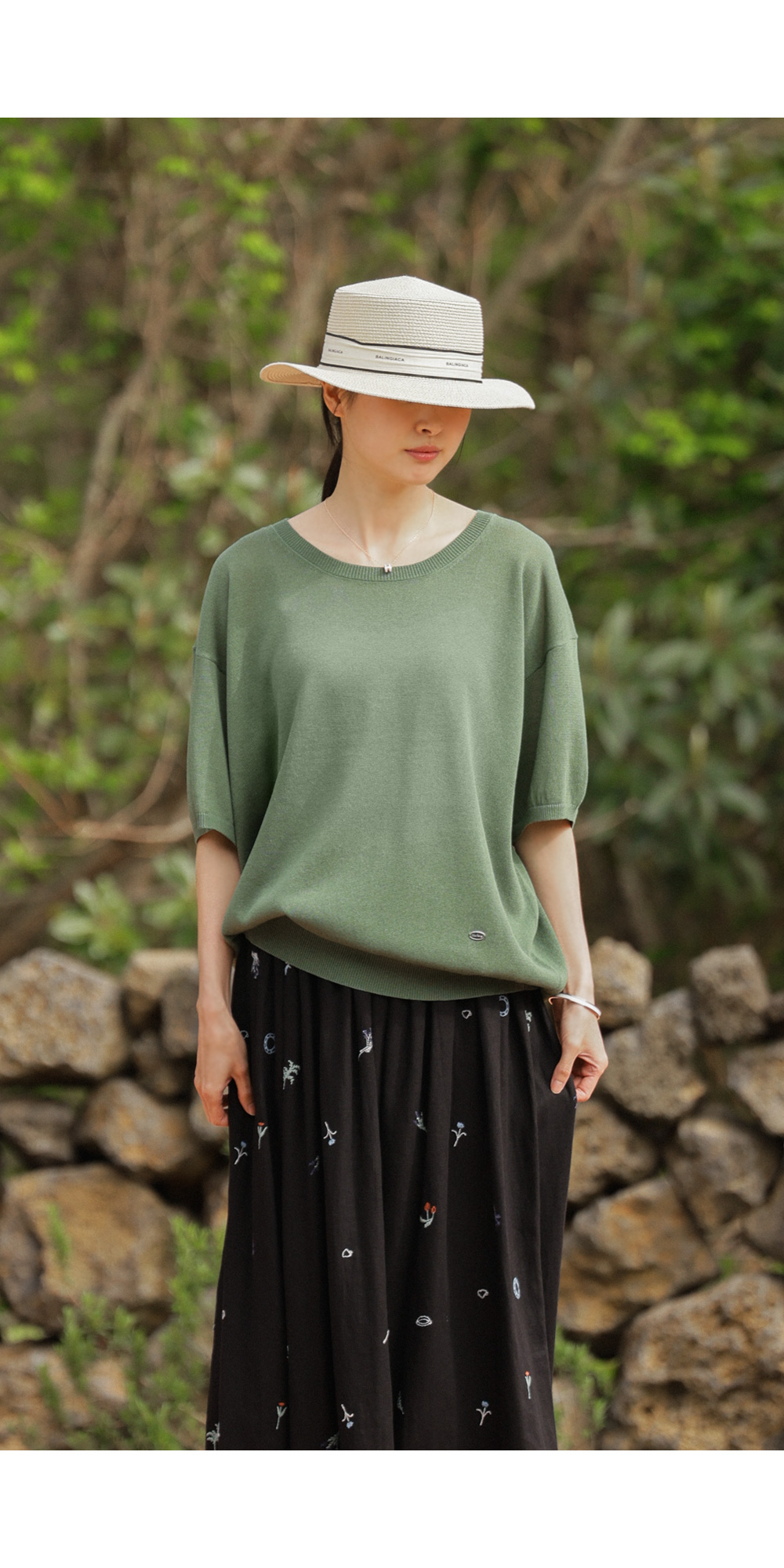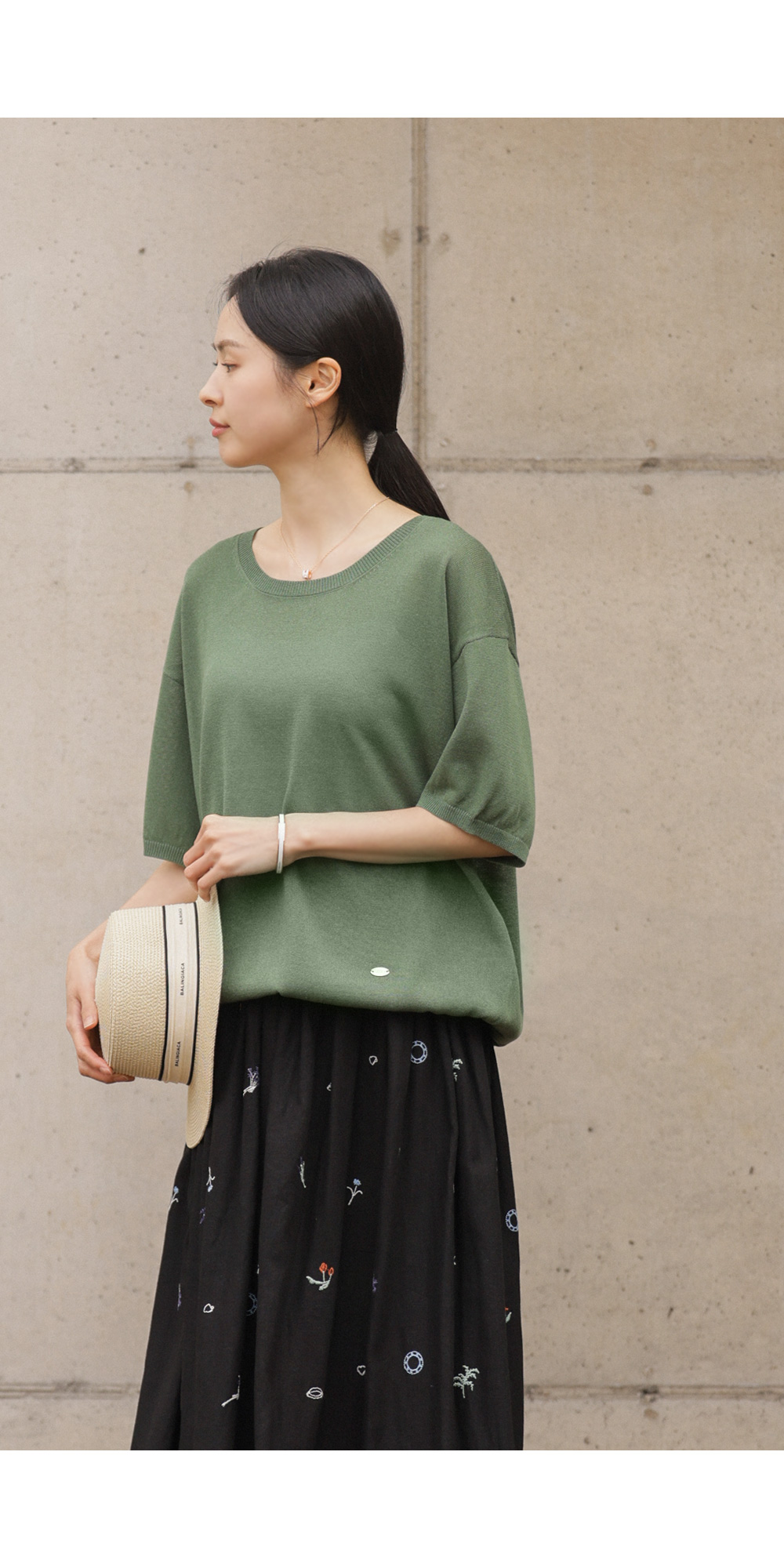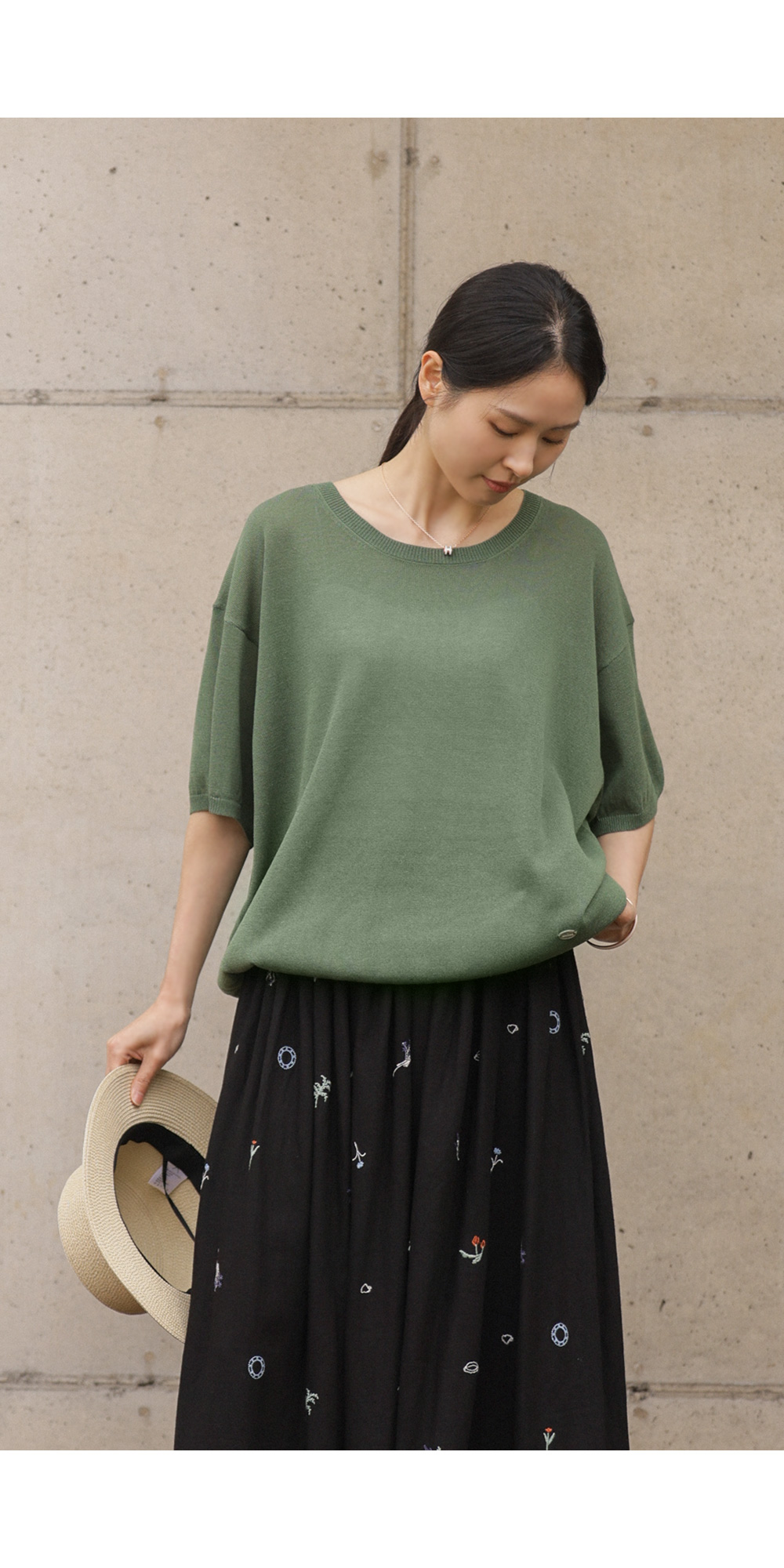 자수 패턴이 들어간 스커트는 자칫 부해 보일까 걱정하시지만, 이 제품은 소재가 워낙 얇고 가벼워 부피감보다는 살랑이는 실루엣이 먼저 눈에 들어온답니다.
