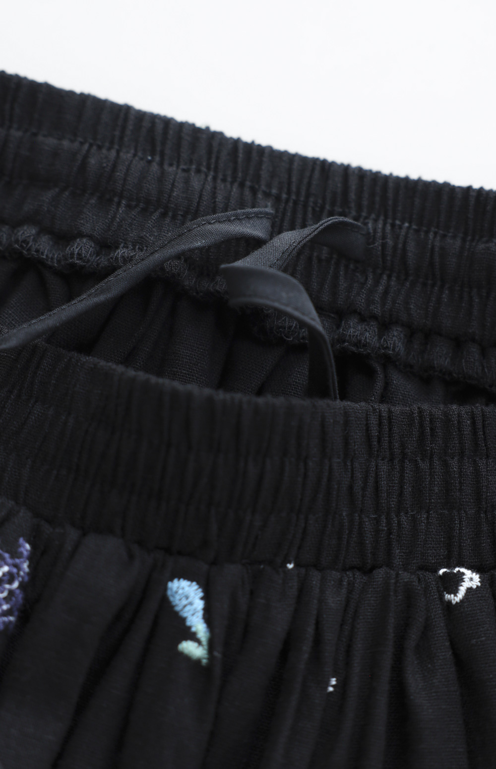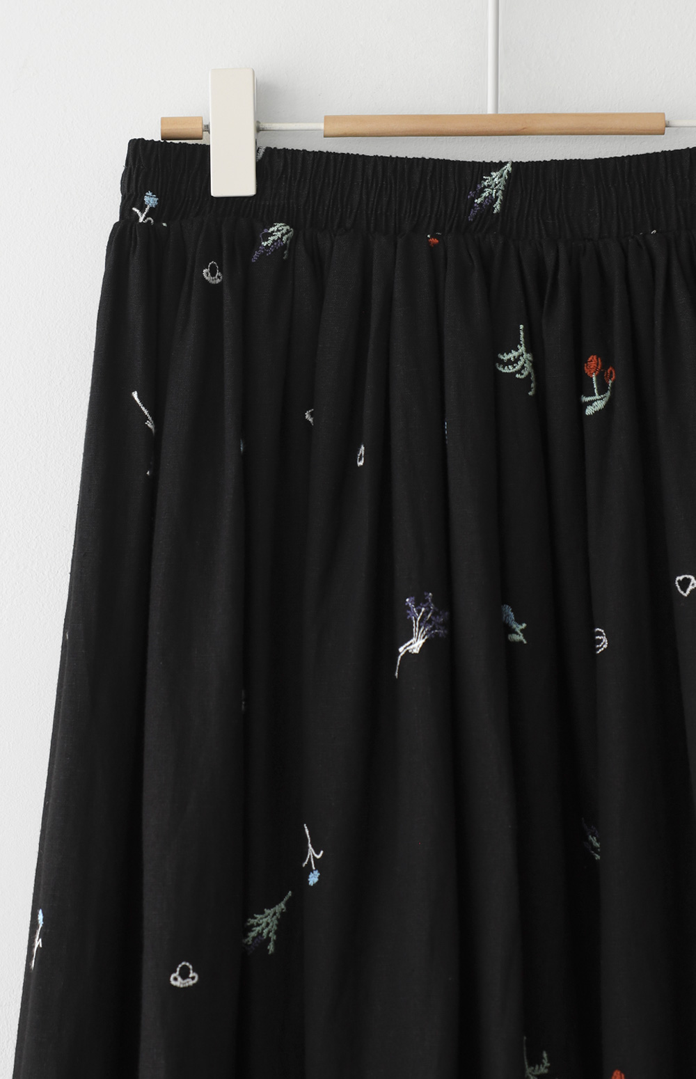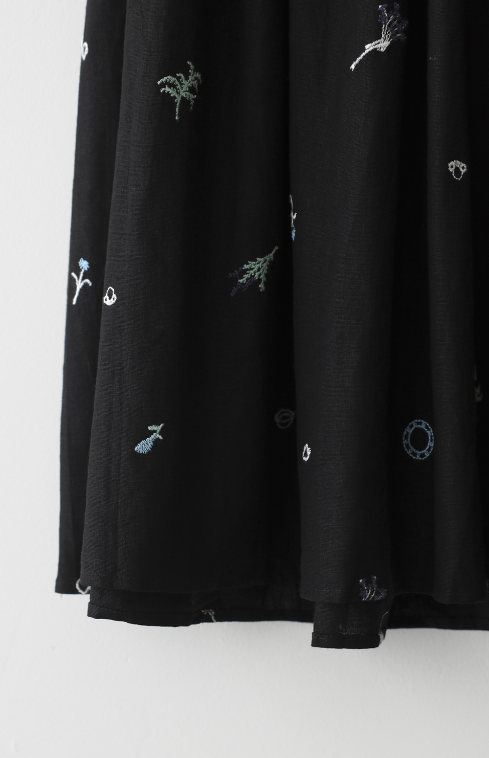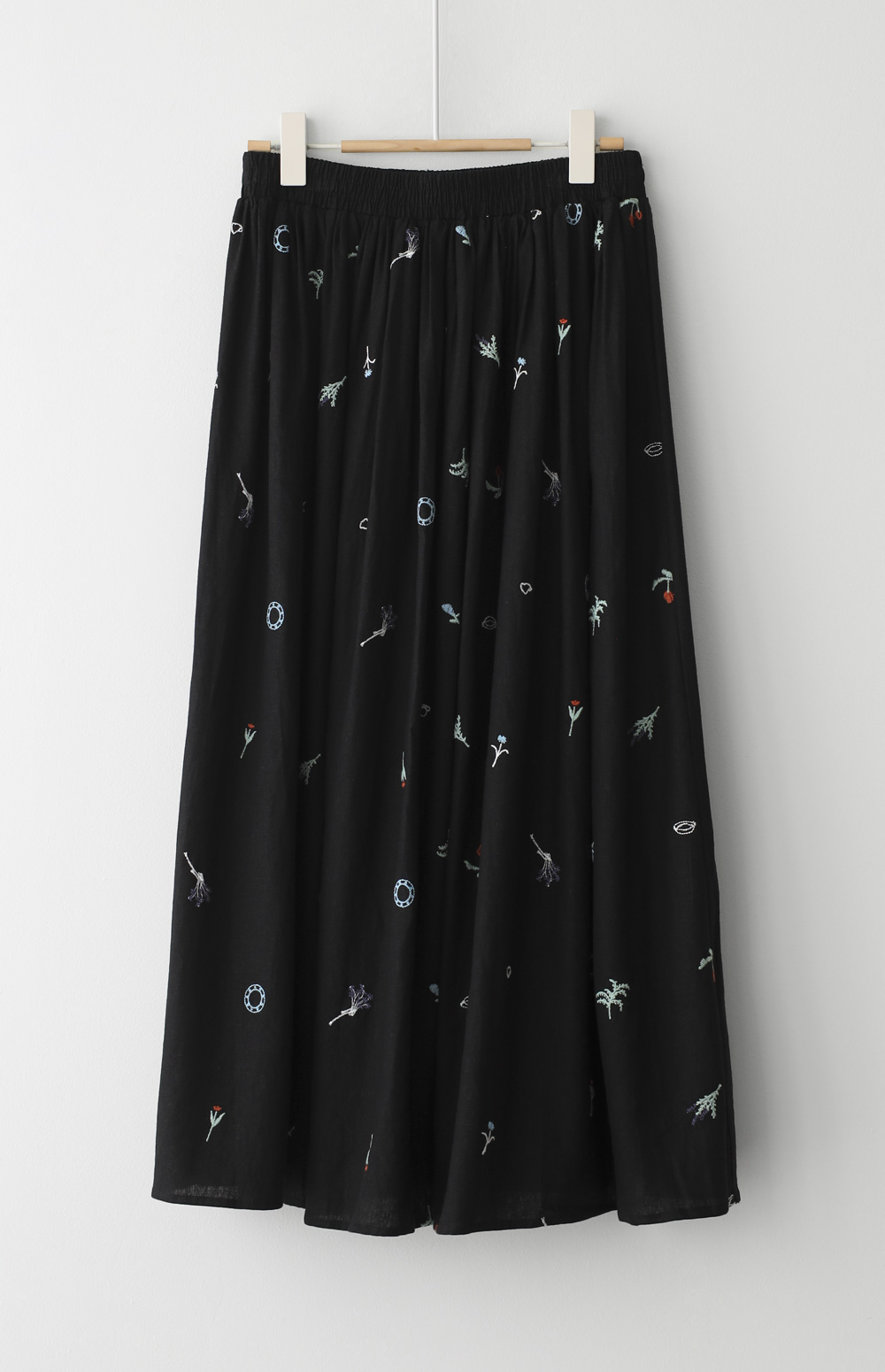 모네딜 자수 린넨 롱스커트 _ 블랙