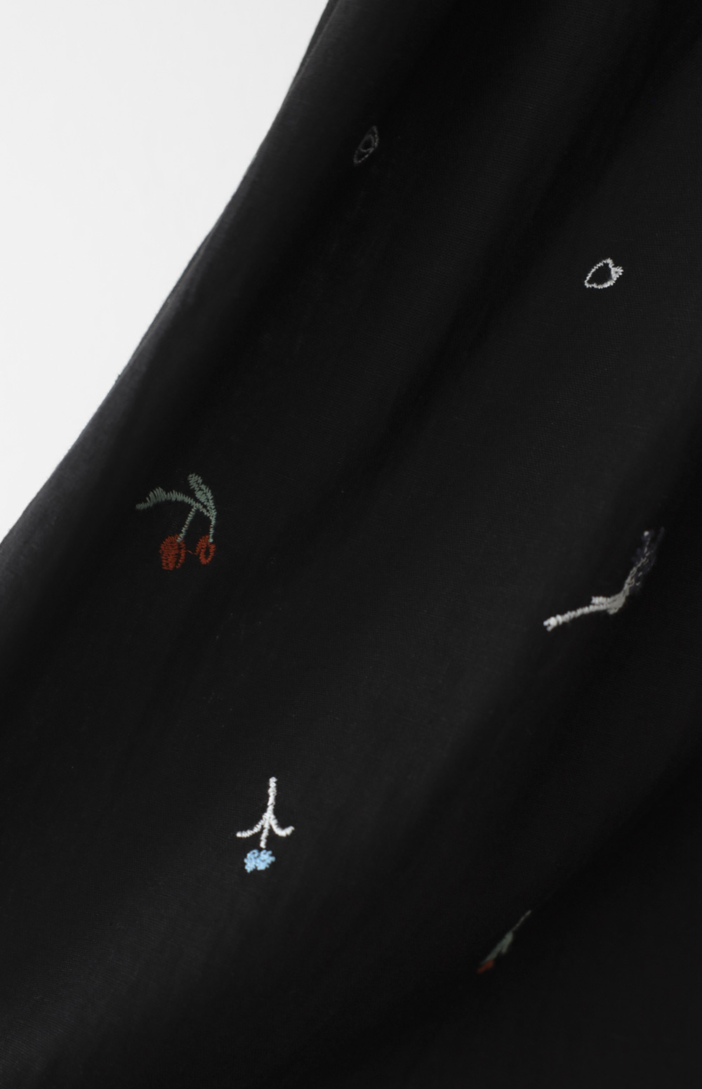 블랙 컬러 위로 수놓아진 풀꽃 자수가