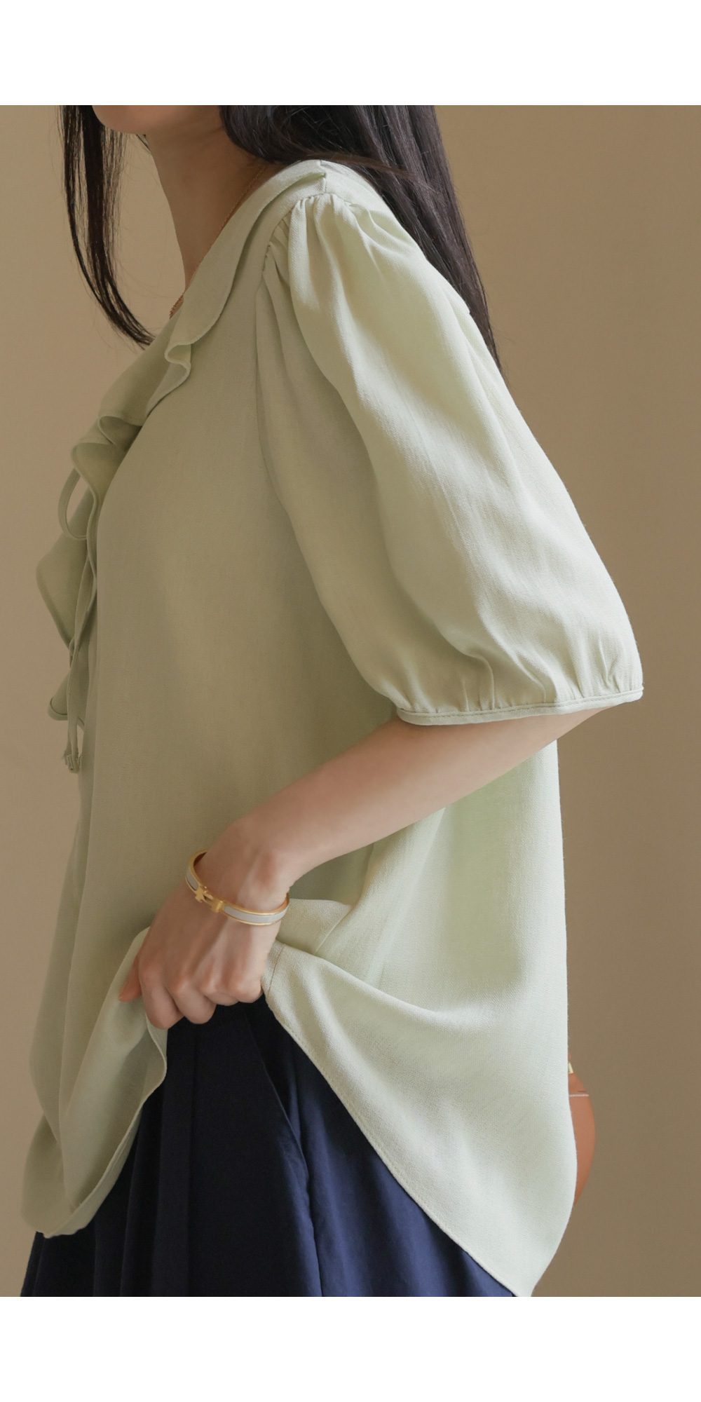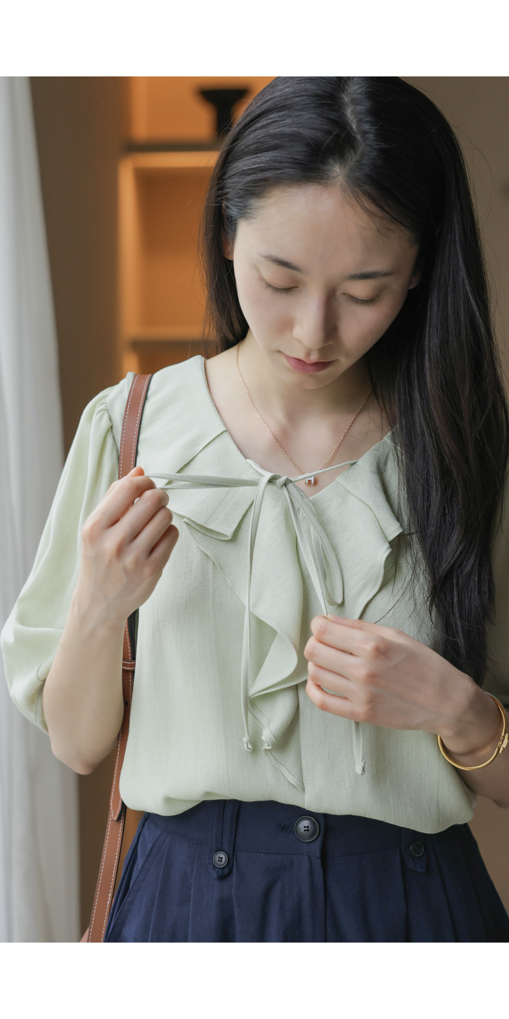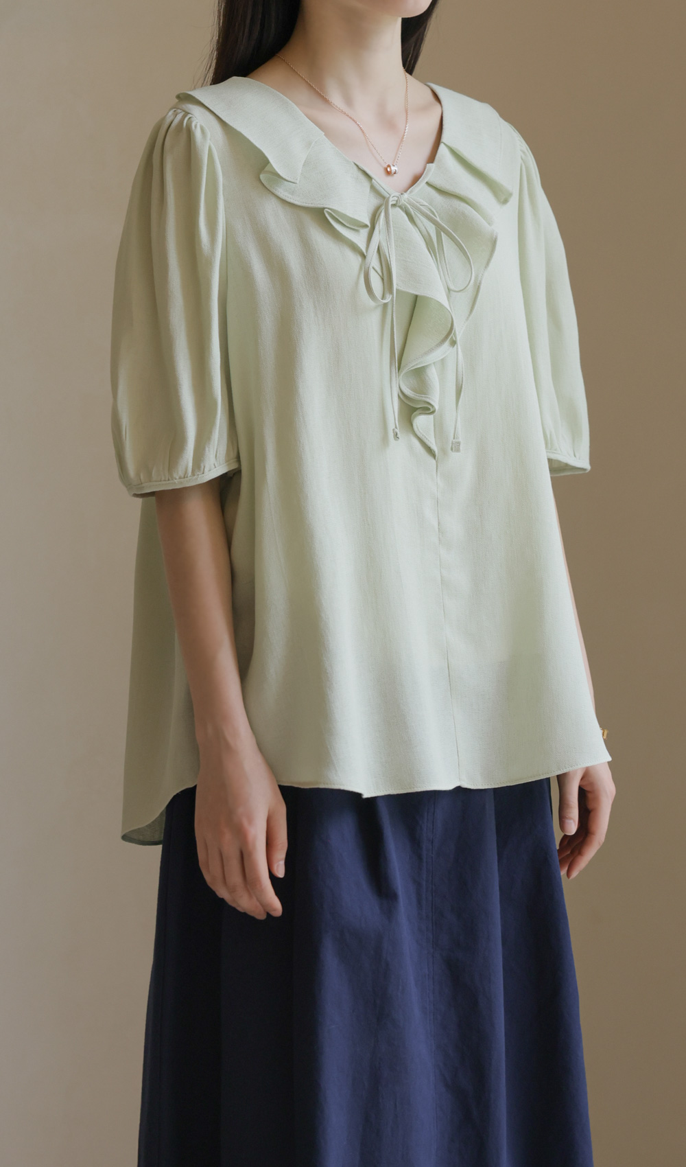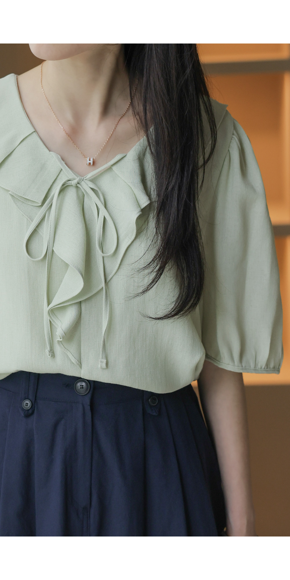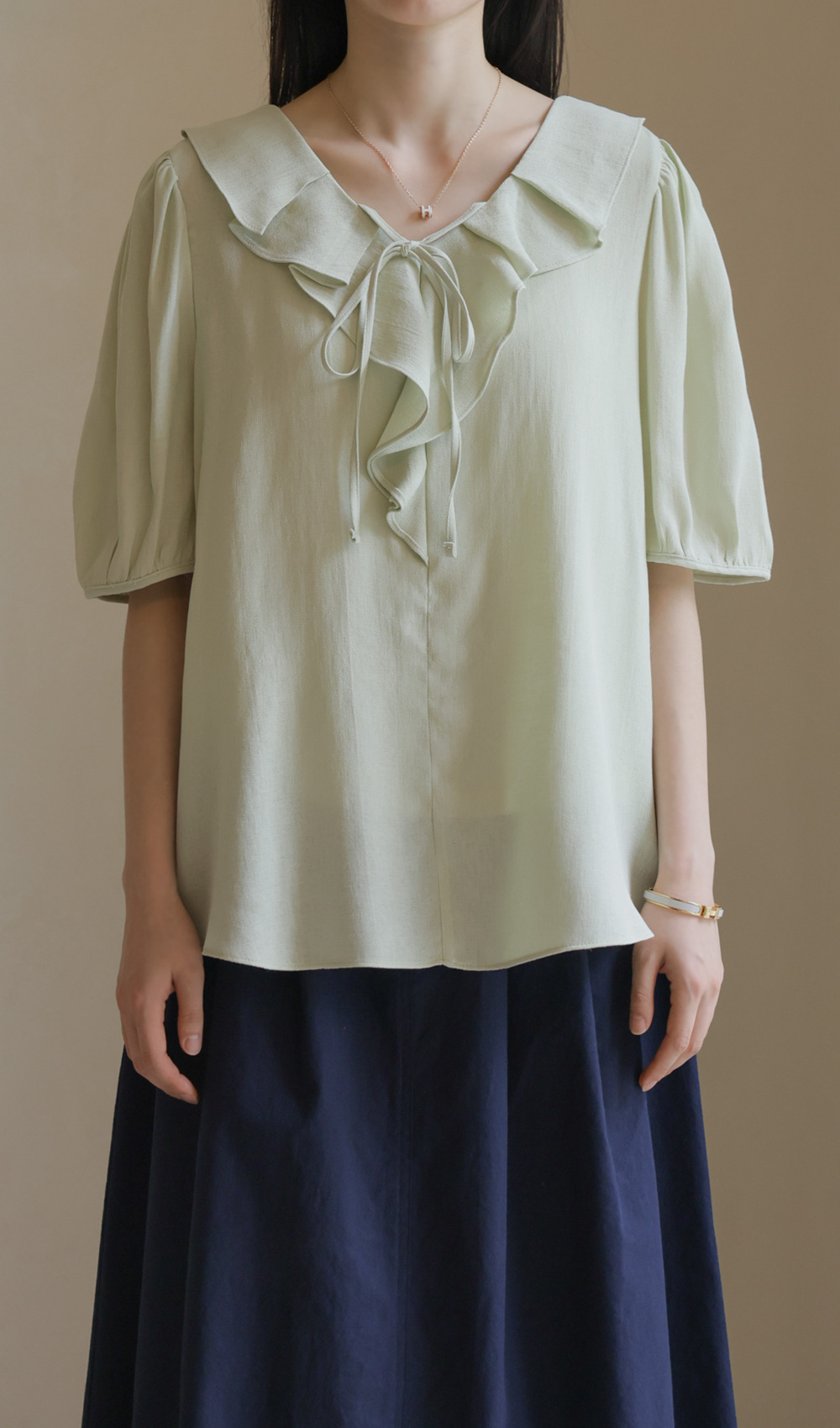 샤나레 프릴넥 블라우스 _ 그린