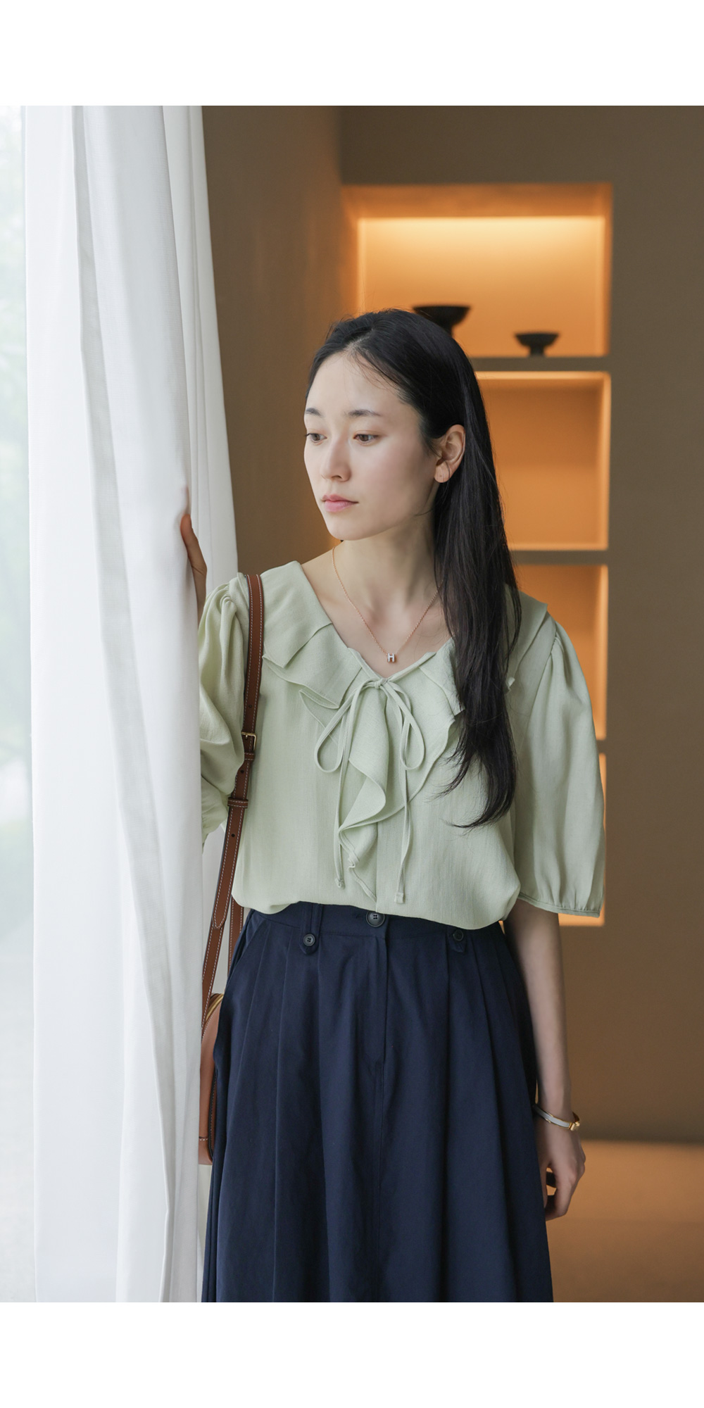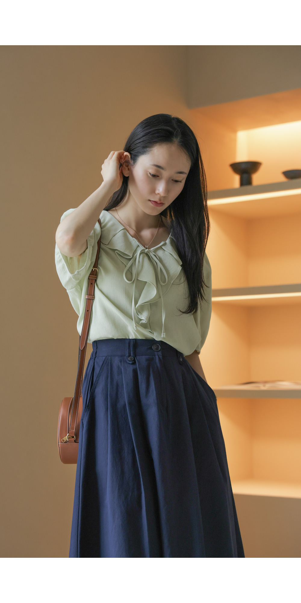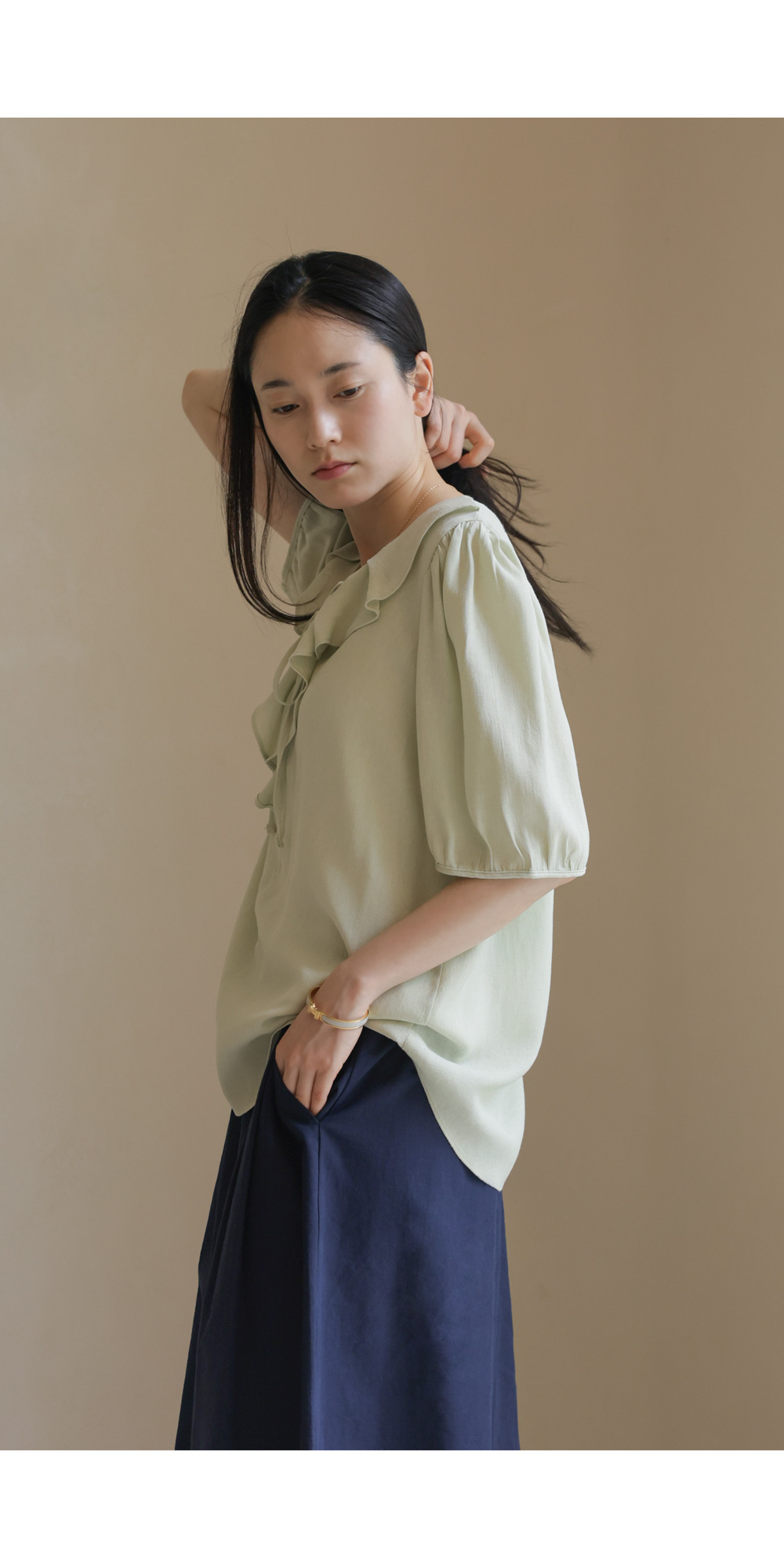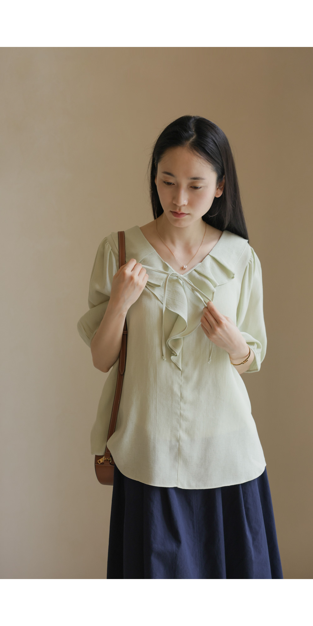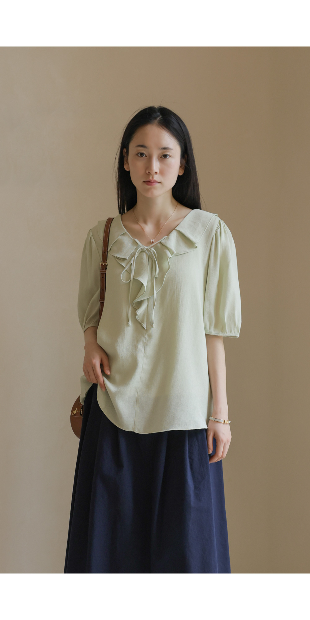 샤나레 프릴넥 블라우스 _ 그린