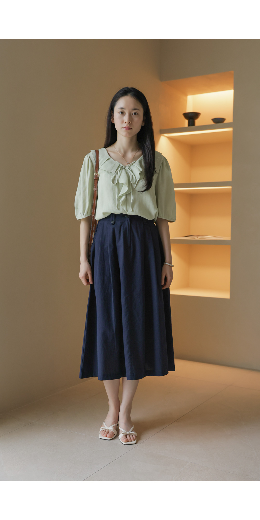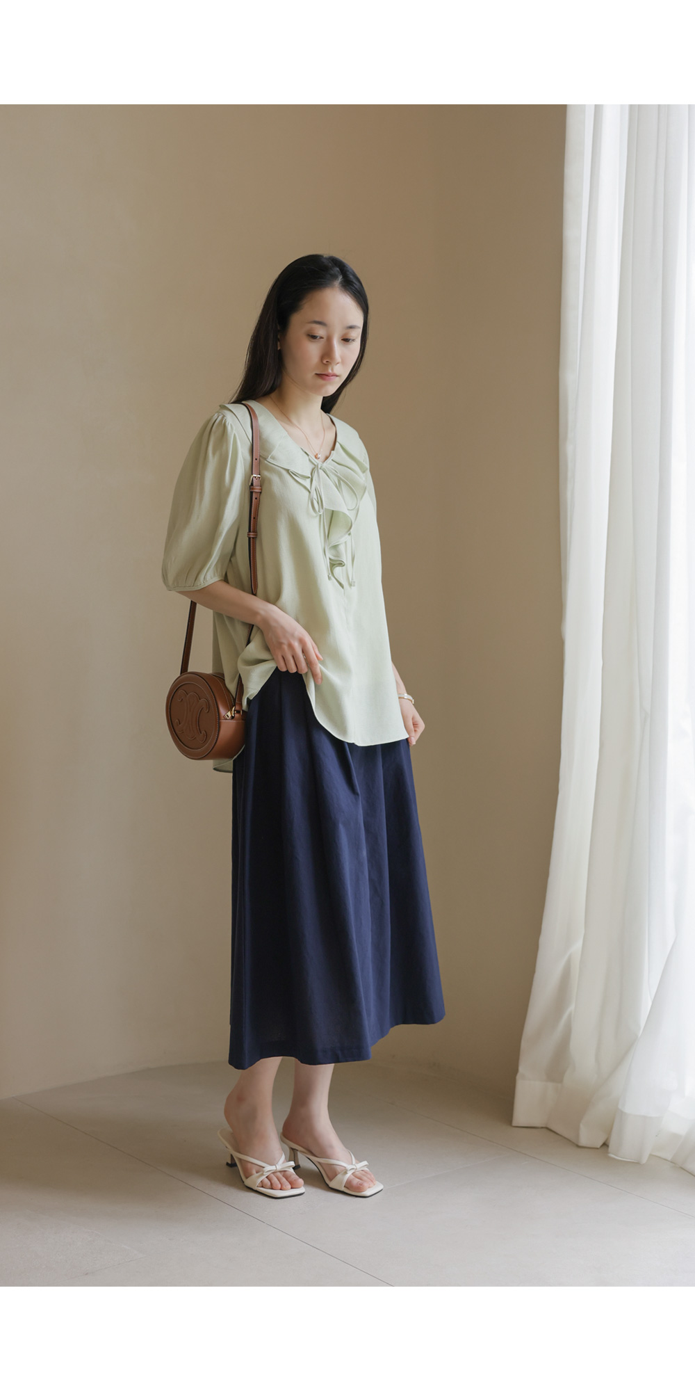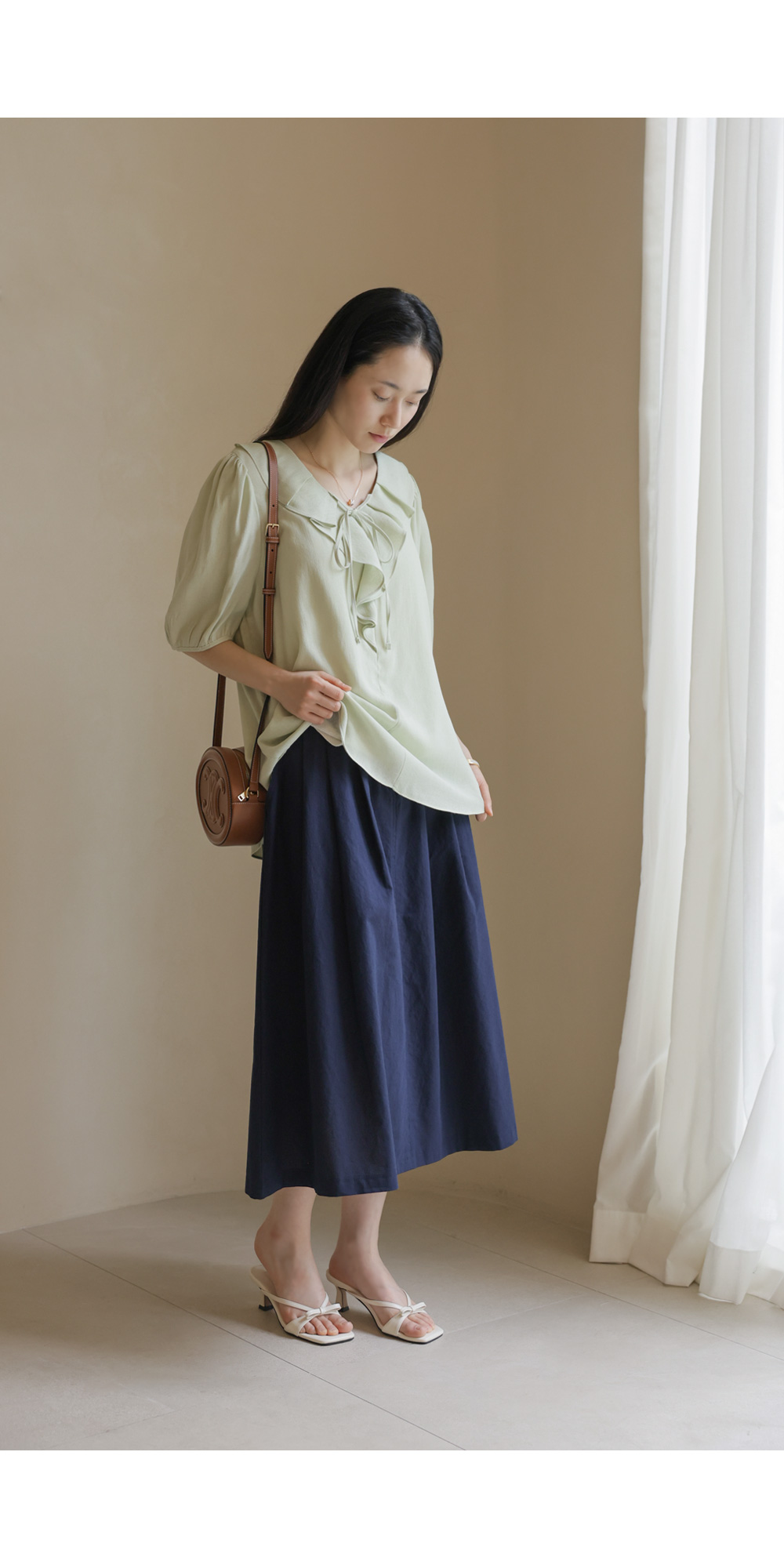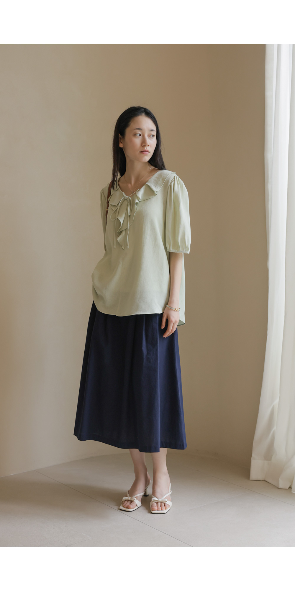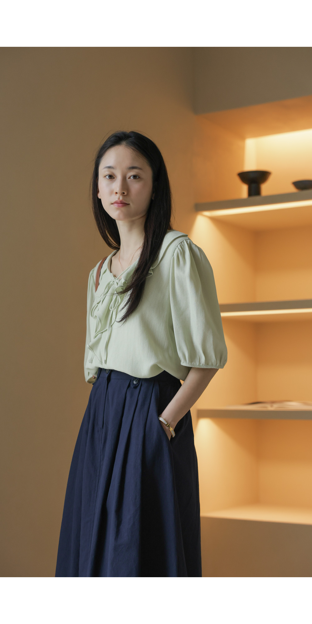 샤나레 프릴넥 블라우스 _ 그린