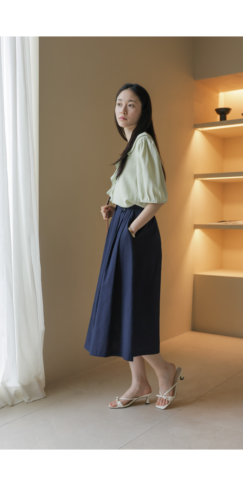 리마에 핀턱 스커트 _ 네이비