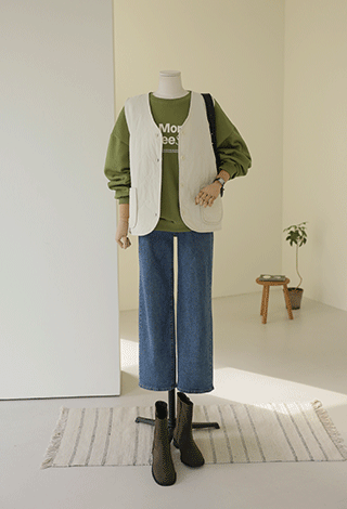 코디정보 차일드 브이넥 블라우스 _ 크림베우스 슬림배기 팬츠 _ 크림
